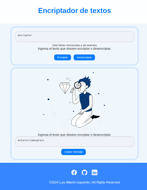 Contenido Challenger One Encriptador de textos